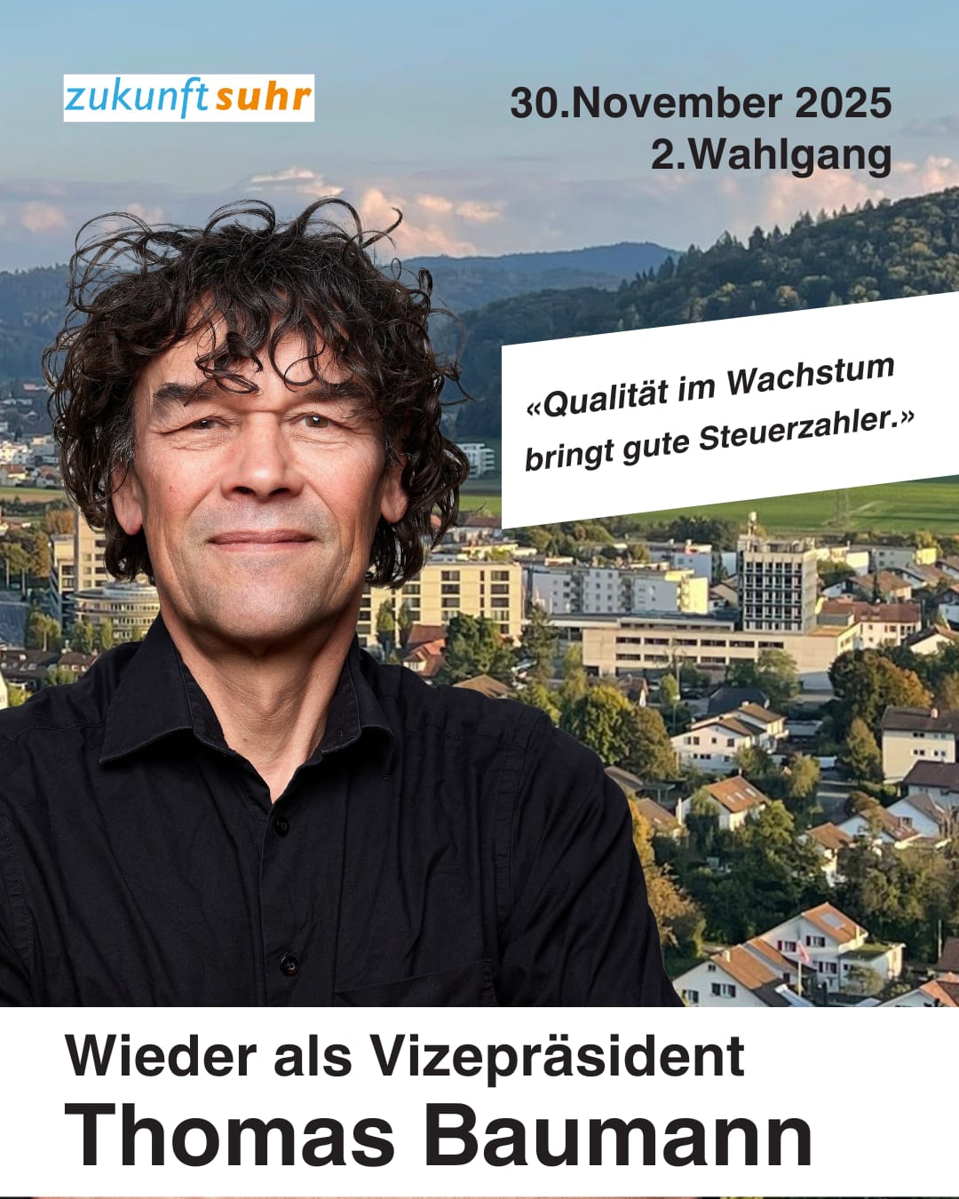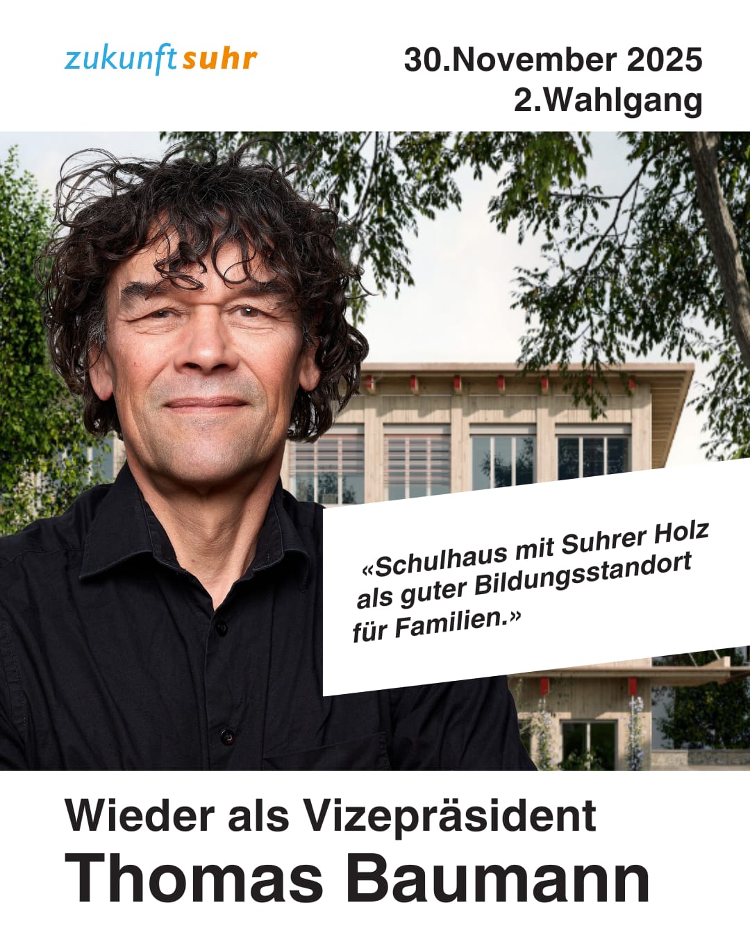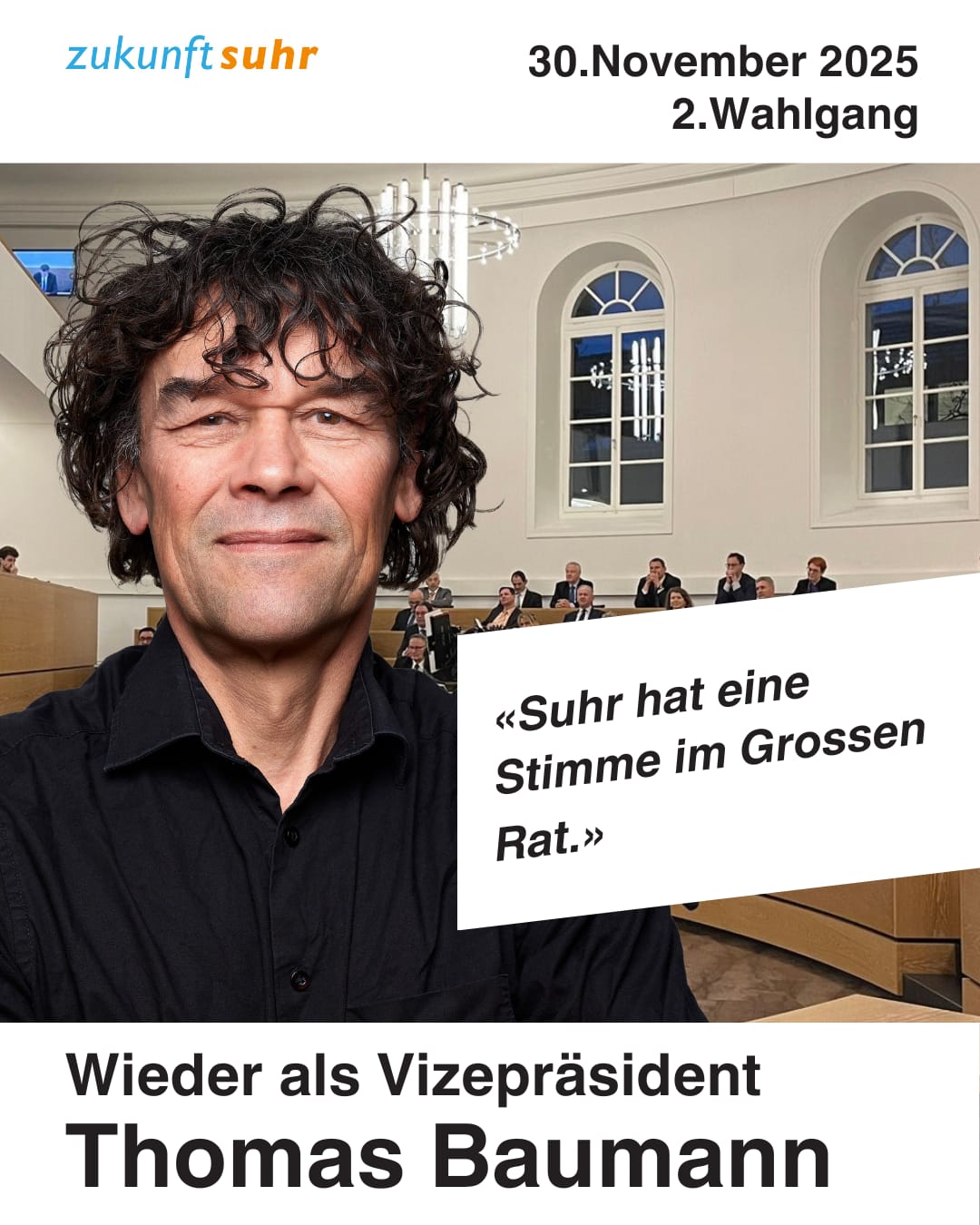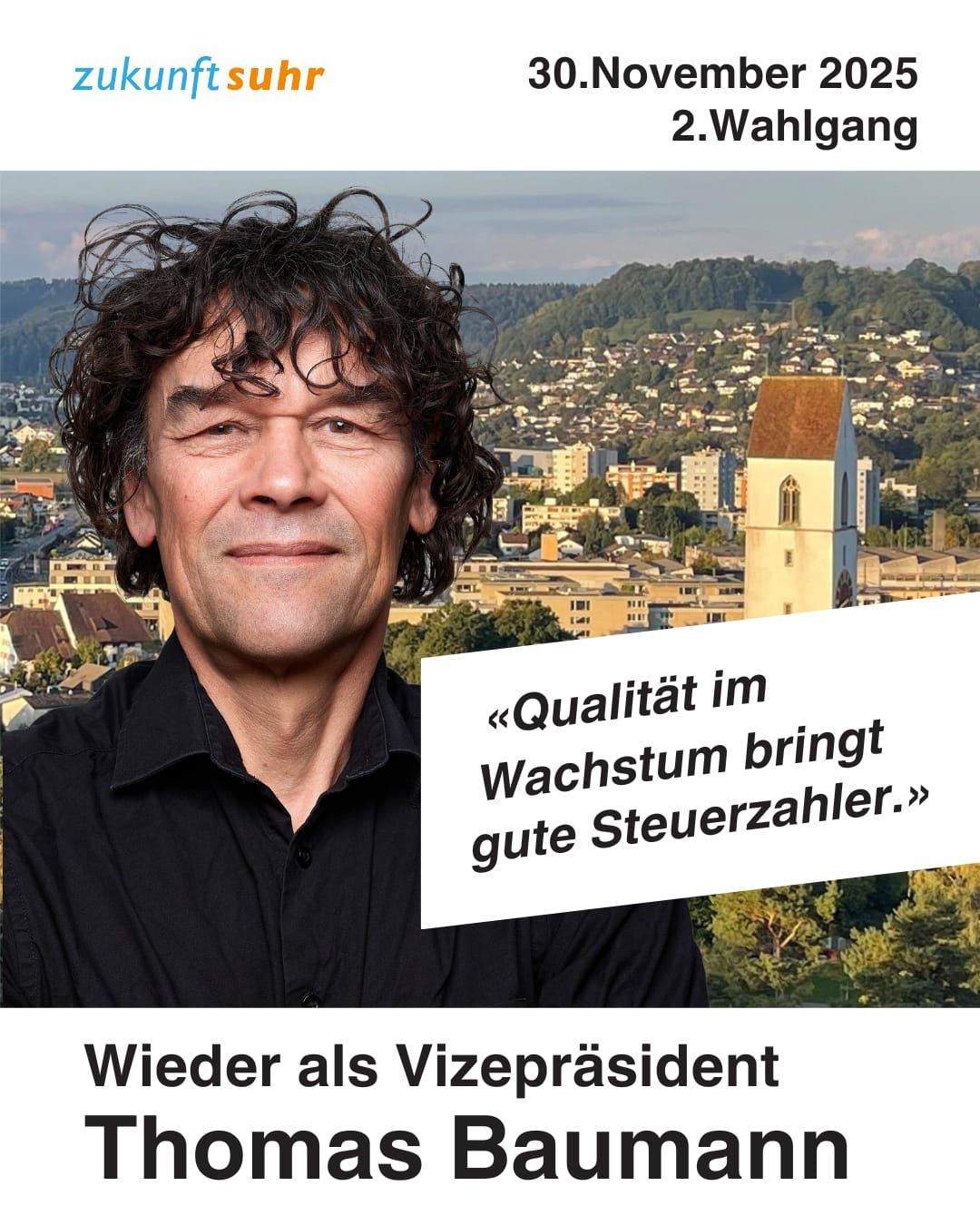 Wir gratulieren Thomas Baumann ganz herzlich zur Wahl! Das gute Ergebnis zeigt, dass seine Arbeit als Bauvorsteher und die vielen positiv sichtbaren Veränderungen in Suhr wahrgenommen und geschätzt werden. Ebenfalls herzlich gratulieren wir Regina Gerber-Werder für die Wiederwahl in die FIKO.