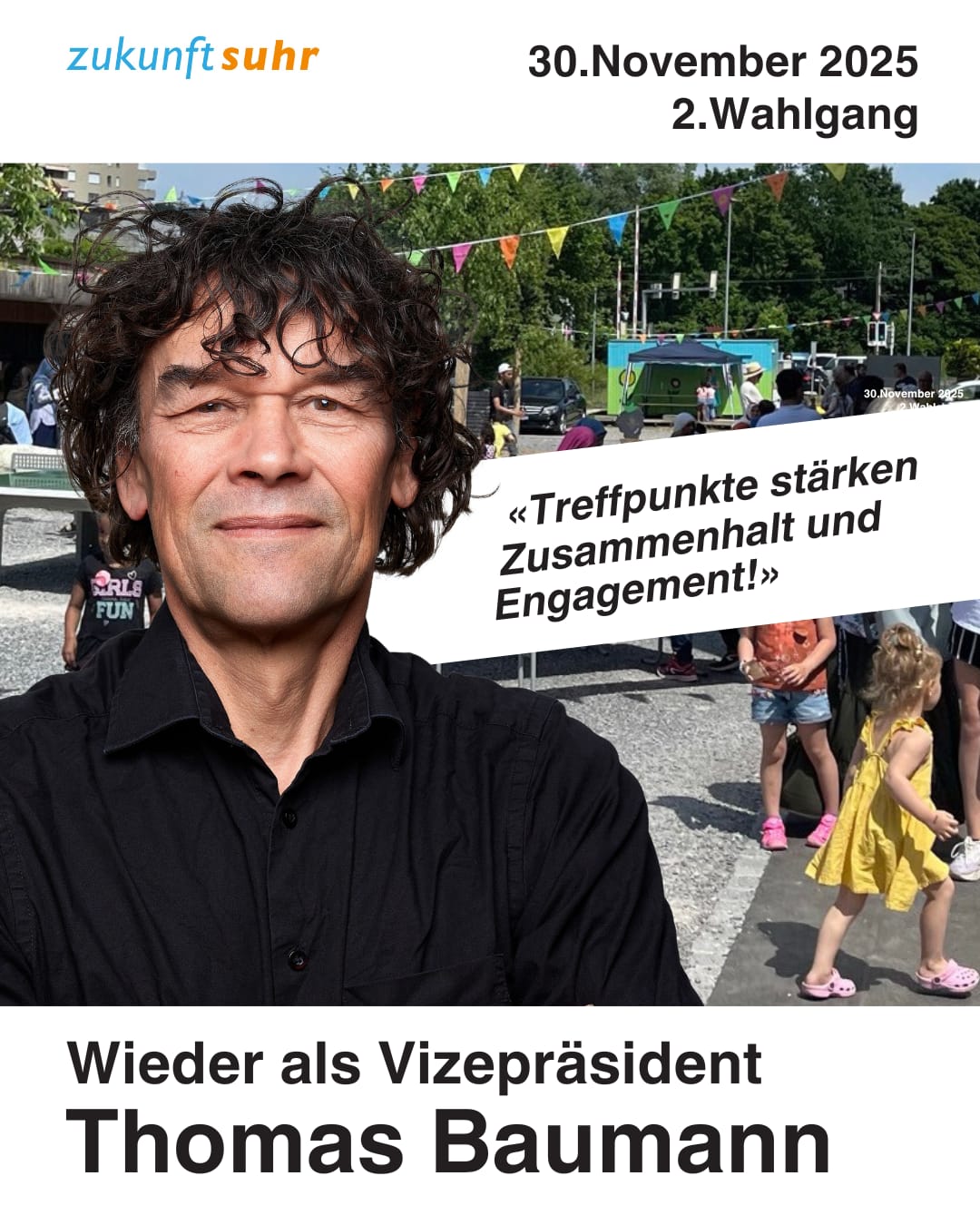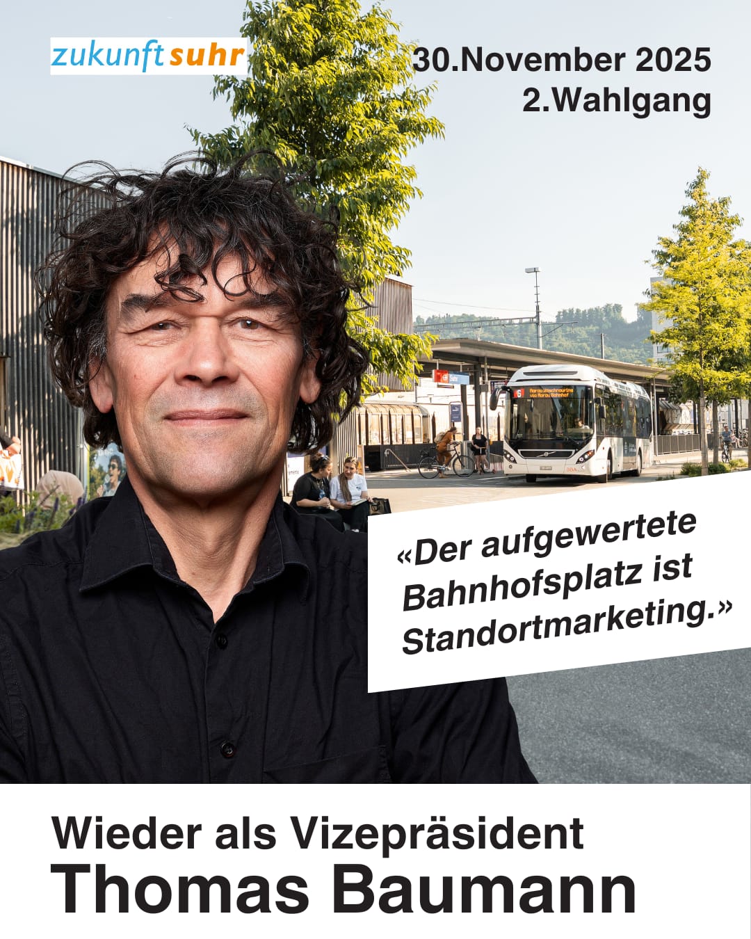 Thomas Baumann wurde bei den Wahlen vor vier Wochen als Gemeinderat sehr gut bestätigt. Für das Vizepräsidium kommt es zum zweiten Wahlgang, obwohl der bürgerliche Herausforderer mit über 200 Stimmen weniger keine Chance hatte. Der zweite Wahlgang ist nötig, weil das absolute Mehr nicht erreicht wurde, und von bürgerlicher Seite ein neuer Kandidat ins Rennen gebracht wird.